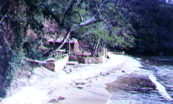 Construção de caminho ligando a praia às casas do sítio, utilizando pedra costeira, msdeira da região barro e cimento. |
